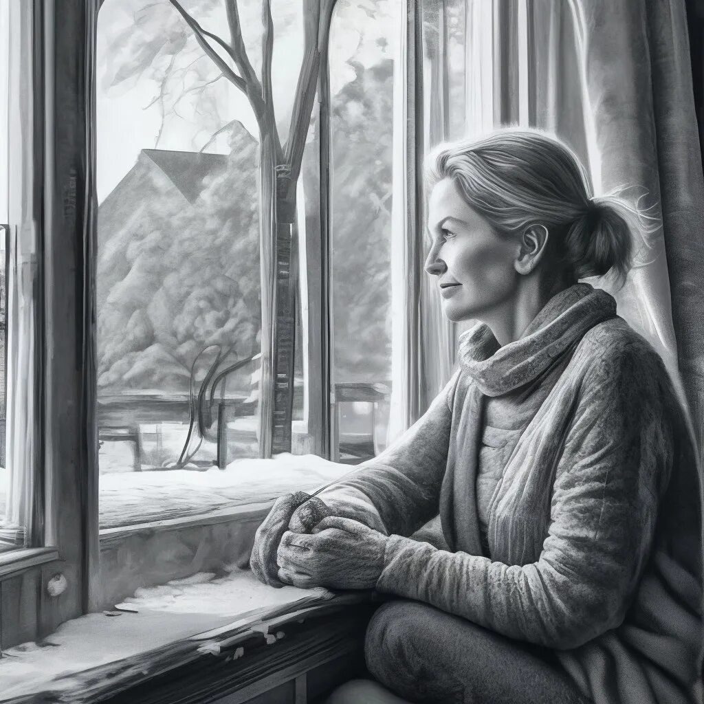 Свет из единственного окна, который разливался по вечерней тьме, создал атмосферу уюта, приглашая к себе. Он словно тропинка в лесу, уводит от зимней стужи, и к дому на крыльце появляется Таисия, закутанная в ватник. Пройдя через сугробы, она стучит в дверь, одевая на себя привычный тон: они дружат уже много лет, и каждое их общение наполнено теплом.