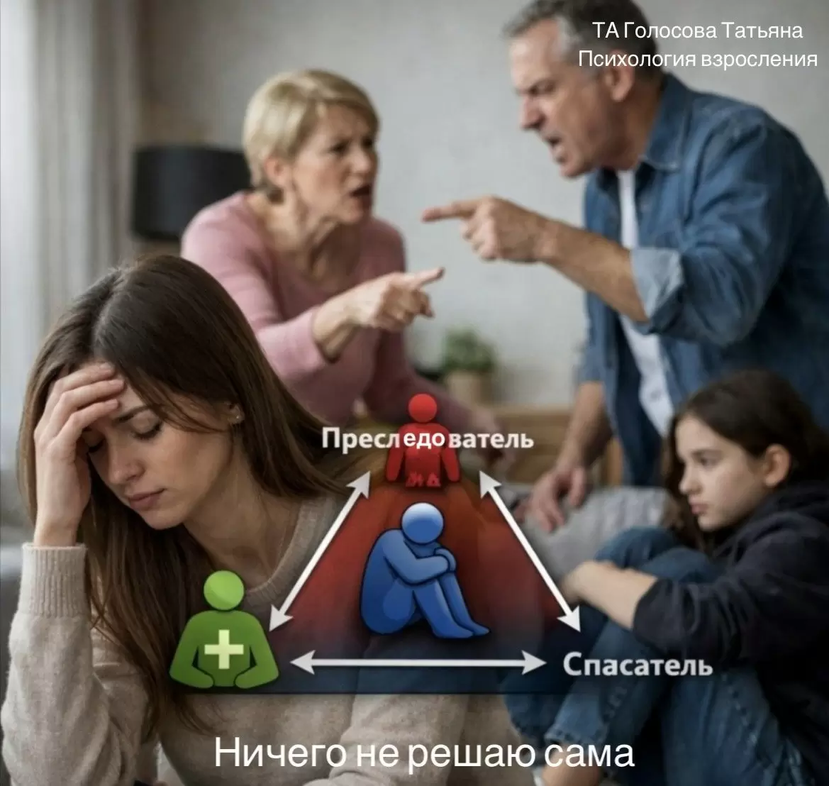Часто психологи сталкиваются с жалобами клиентов: "Мама не перестает вмешиваться", "Отец постоянно критикует", "Общение стало невозможным". На первый взгляд, эти проблемы могут показаться обычными семейными конфликтами. Однако за ними скрывается устойчивый сценарий, который можно объяснить через треугольник Карпмана.
