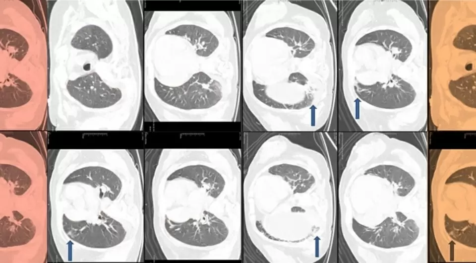 Лабораторные исследования показали панцитопению с понижением всех форменных элементов крови и выраженный дефицит витаминов B12 и D. Ультразвуковая диагностика показала увеличение печени, а компьютерная томография выявила изменения в легких, что побудило врачей больше углубиться в поиск диагнозов.