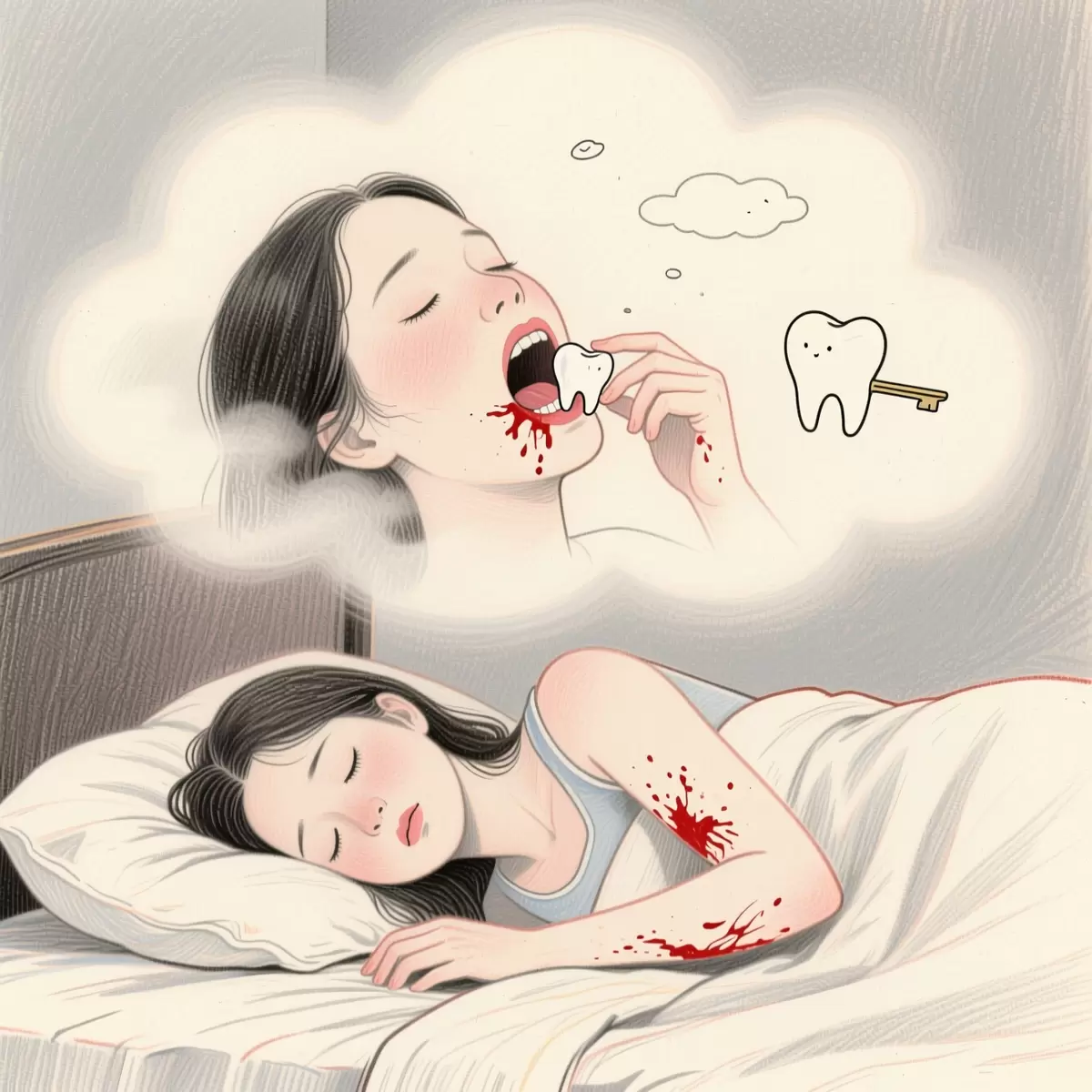 - Выпадение зубов: В сновидениях зубы считаются символом уверенности, способности принимать решения. Их потеря, особенно сопровождаемая болью или кровью, может указывать на утрату самоуважения или внутреннюю слабость. Также это может отражать внутренние конфликты или неспособность адаптироваться к сложным жизненным ситуациям.