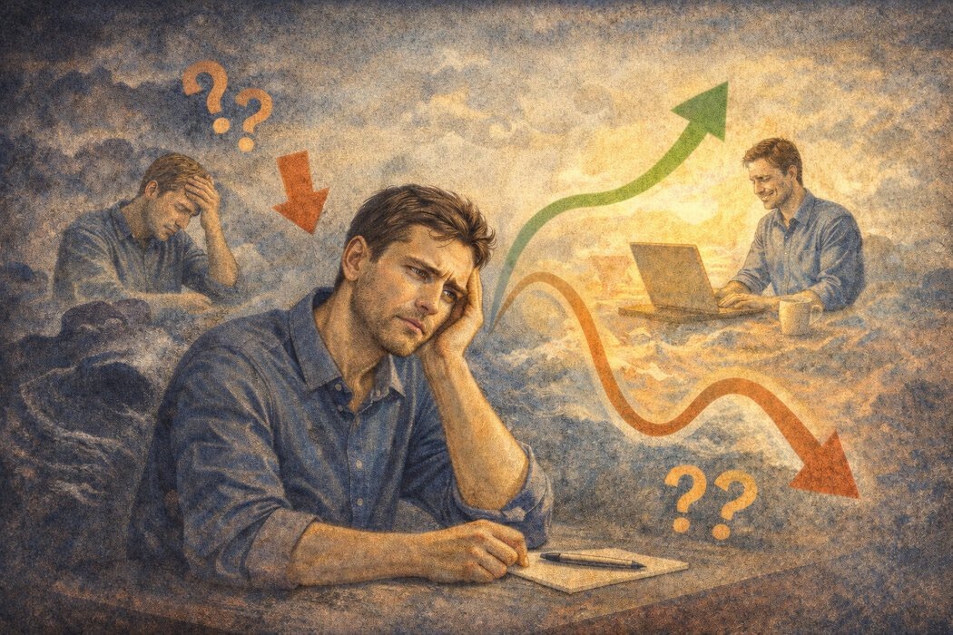 Человек может пройти значительный путь: дыхание становится легче, появляется энергия, возвращается к социальным взаимодействиям. Но иногда, после такого прогресса, наступает период, когда тревога возрастает, а энергия покидает. В этот момент возникает мысль: "Вот, я снова вернулся туда же". Однако терапевтический процесс редко идет по прямой линии. Он напоминает море: волны поднимаются и спадают, и в этом нет ничего плохого.