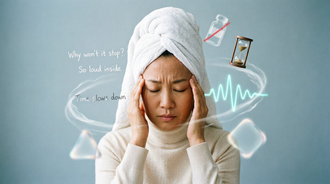 В измученной тишине затемненной комнаты снова ощущается знакомый ритм — пульсирующая головная боль, мешающая сосредоточиться на обычных делах. Человек с той же старой историей о борьбе с мигренью находит утешение в повседневных ритуалах: холодное полотенце, кварк-терапия, надежда на предстоящий сон, но боль никуда не уходит.